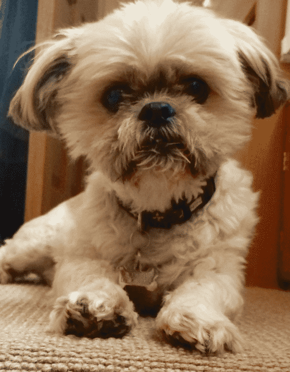 Picture of Scooby aged 12 wearing his handsome new Tagiffany name tag.