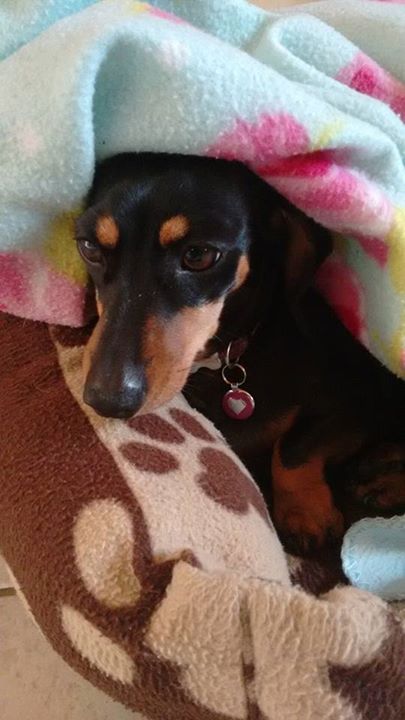 Florence with her new name tag from Tagiffany that arrived today.
