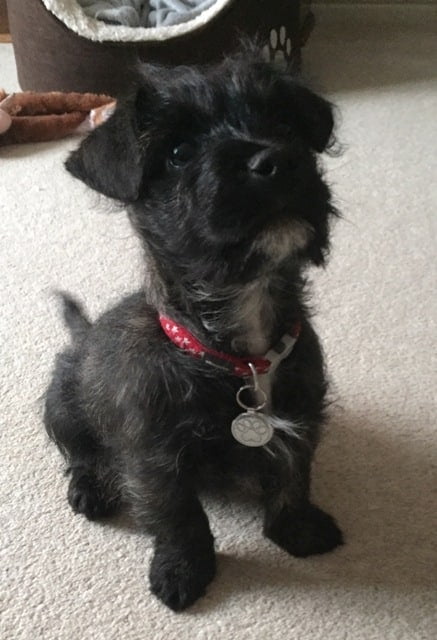 04 FebHollieThis is my little scruff pot Hollie wearing her first sparkly tag. She wears it with pride & loves it. Thank you it’s gorgeous! DollyElsie