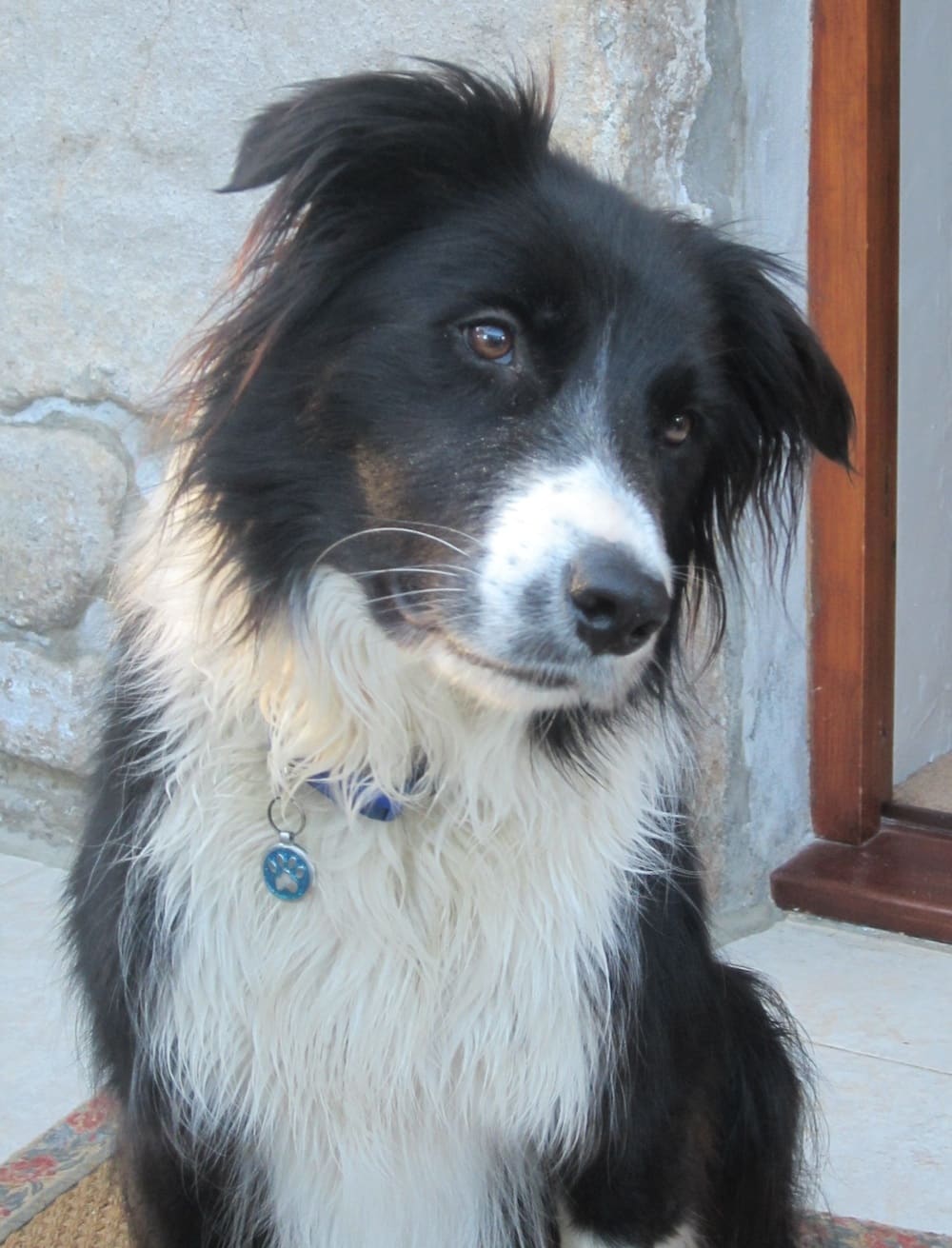 15 JulZacOur border collie Zac (from Cornwall) showing off his sparkly new tag shortly after a cooling swim in the sea RubyNeeko