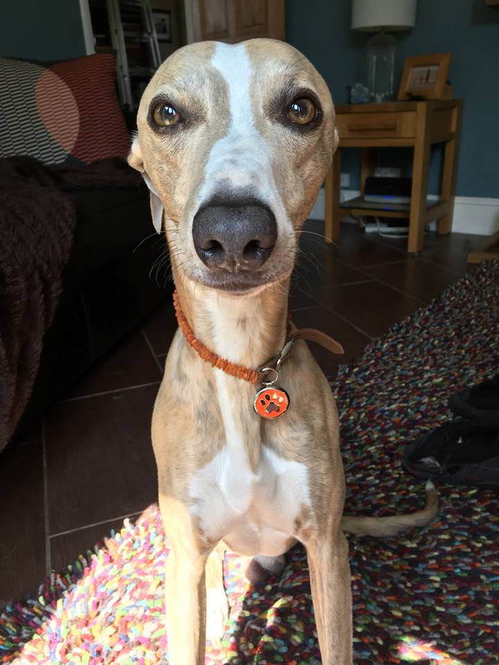 08 JulNimrodThank you from two very grateful whippets for their beautiful tags! Nimrod is looking a bit serious and Hester (with the yellow) as aloof as ever! They look gorgeous with their amber collars. Thanks for a great service. Megan Adams x HesterHickory