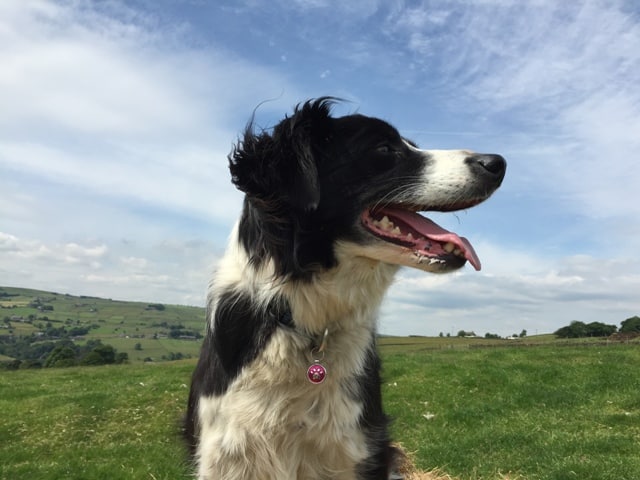 01 JunFloHere she is wearing her new tag sat on a Hay Bale in the middle of a field on our walk today. RileyToffee