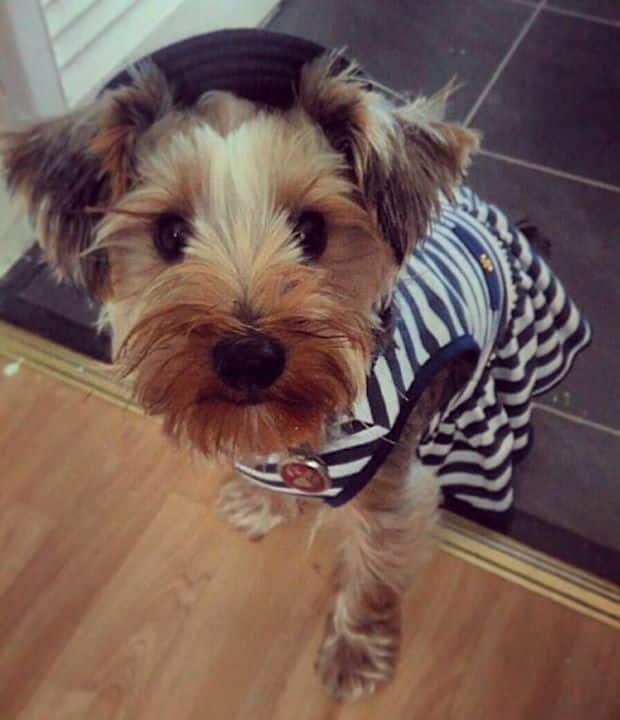 18 MarFraggleFraggle the Yorkie going out for the day in her new outfit. Her Tagiffany ID tags sparkling in the sun #petofthemonth LilySam & Bella