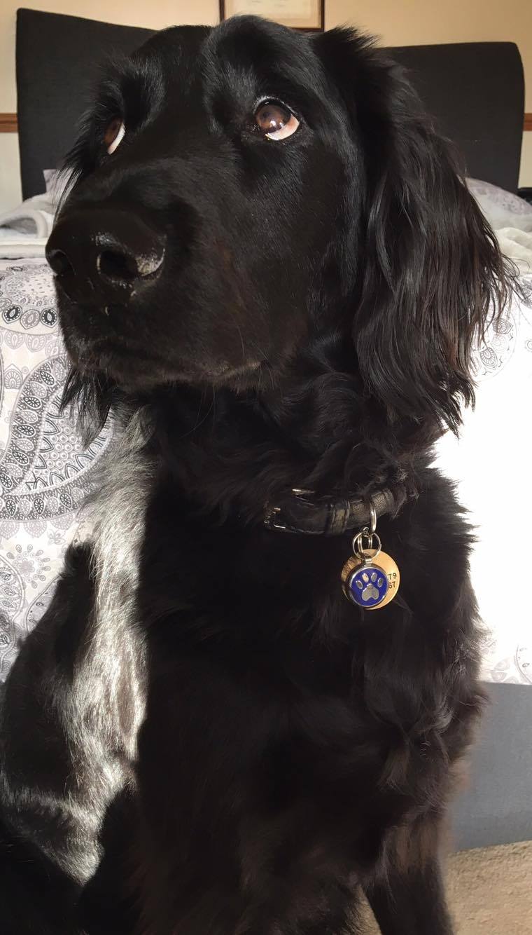 @Tagiffany Merlin in his new Tagiffany tag! What a handsome boy!!